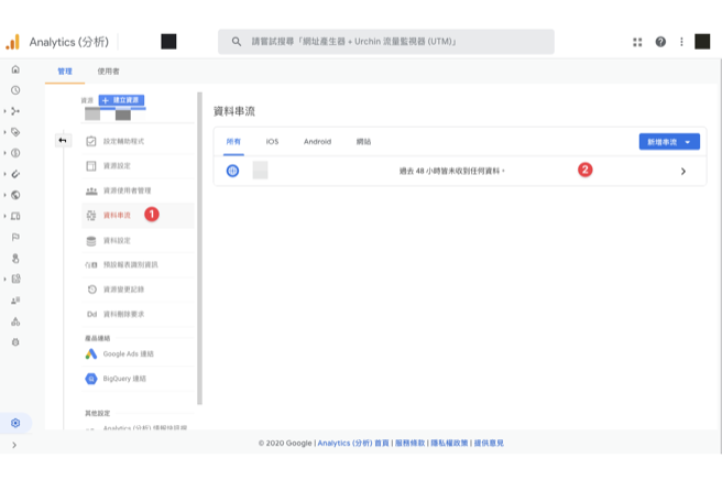 如果是照著第二步 [建立新的 Google Analytics (分析) 4 資源],此時 Google 會替你產生新的網站資料串流。但如果需要增加其他資料來源,便需要先到 [資料串流] 中另外新增。
