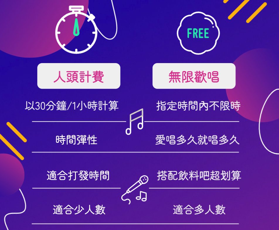 1.收費方案:30分人頭計費 v.s 無限歡唱